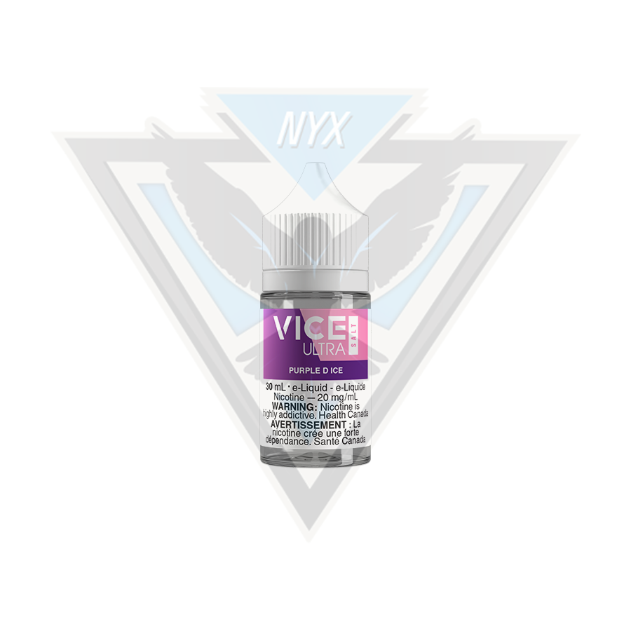 Introducing Purple D Ice by VICE ULTRA Salt, a premium nicotine salt e-liquid that delivers the sweet and tangy rush of juicy grapes, perfectly chilled with a crisp, icy finish in every satisfying puff.